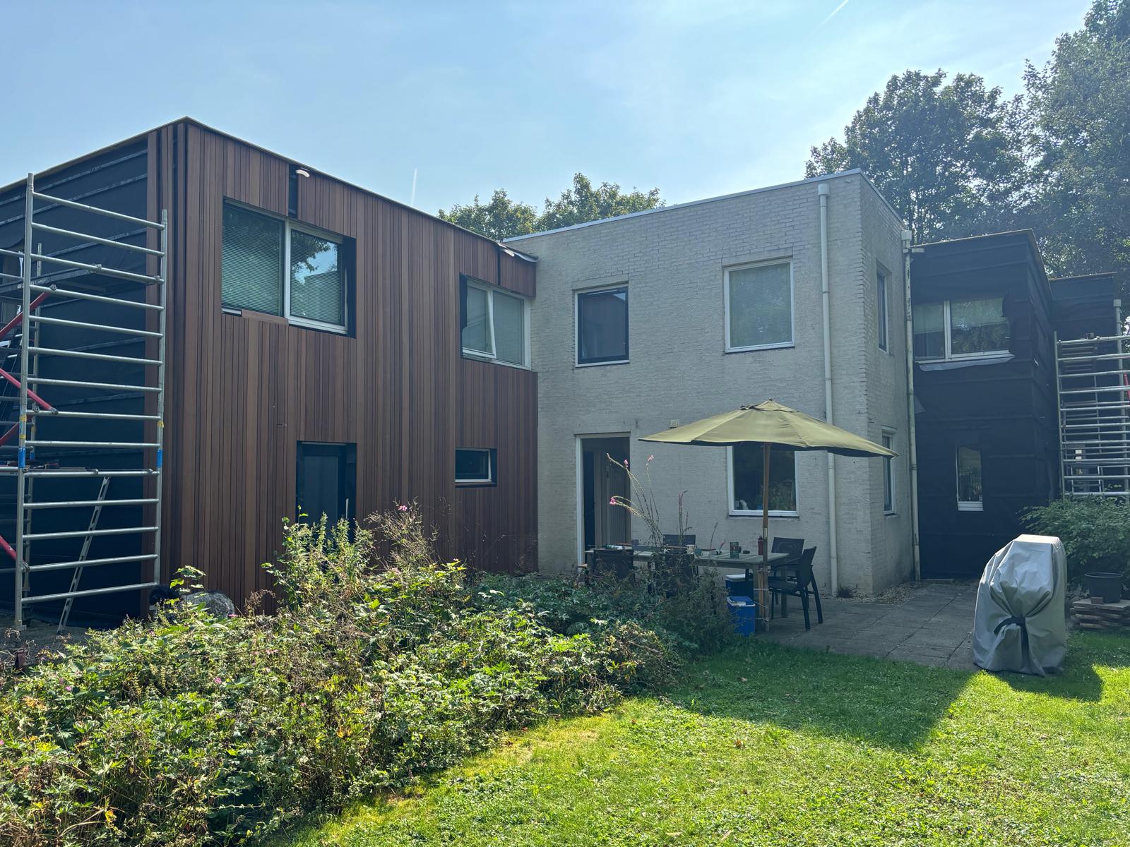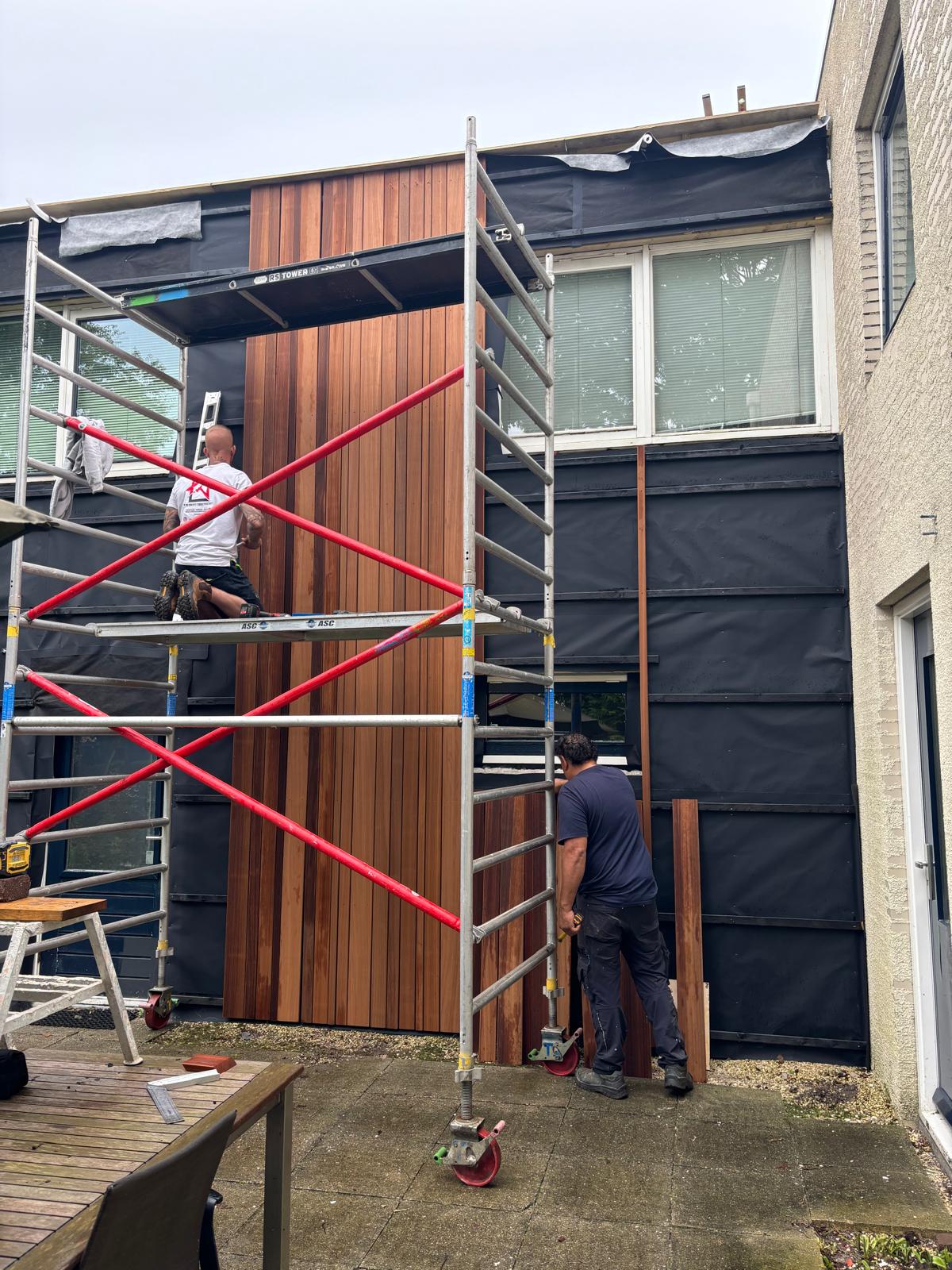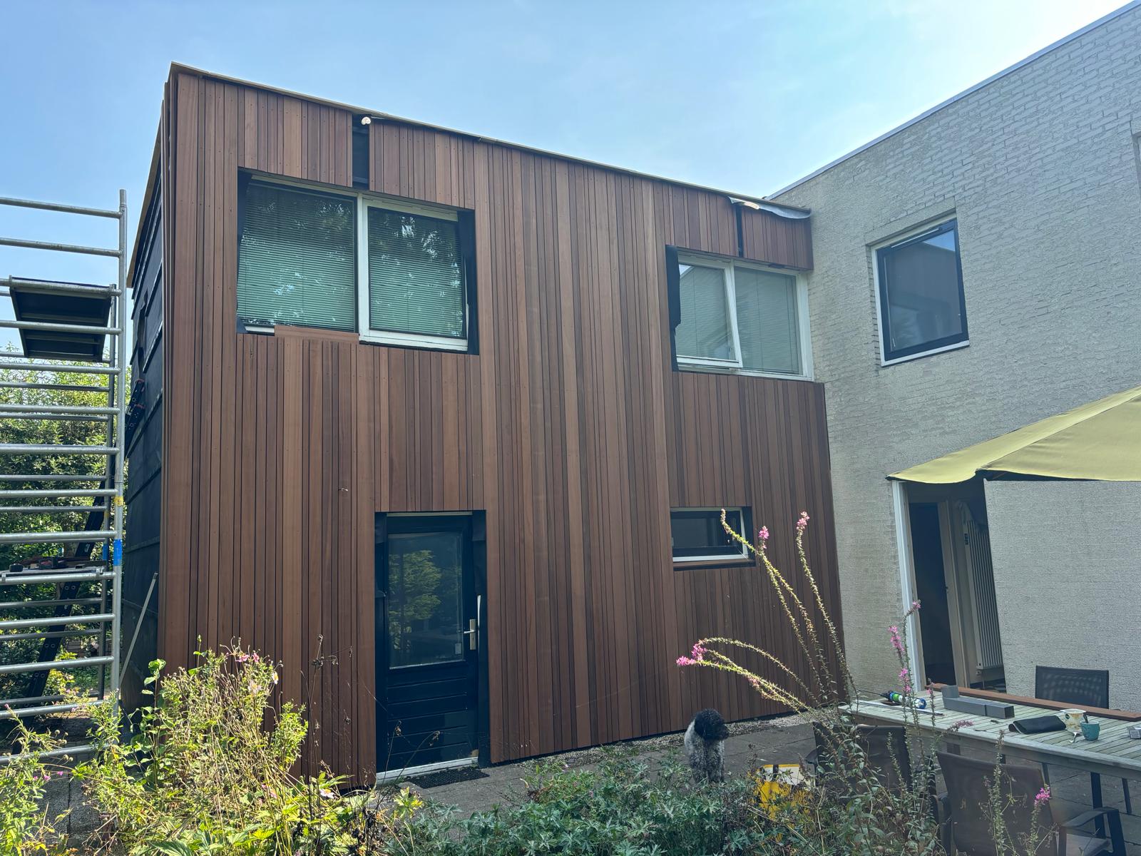 Realisatie van nieuwe Ayous gevelbekleding in combinatie met een Ispo-gevel, waarbij uitstraling, duurzaamheid en detaillering centraal stonden.
