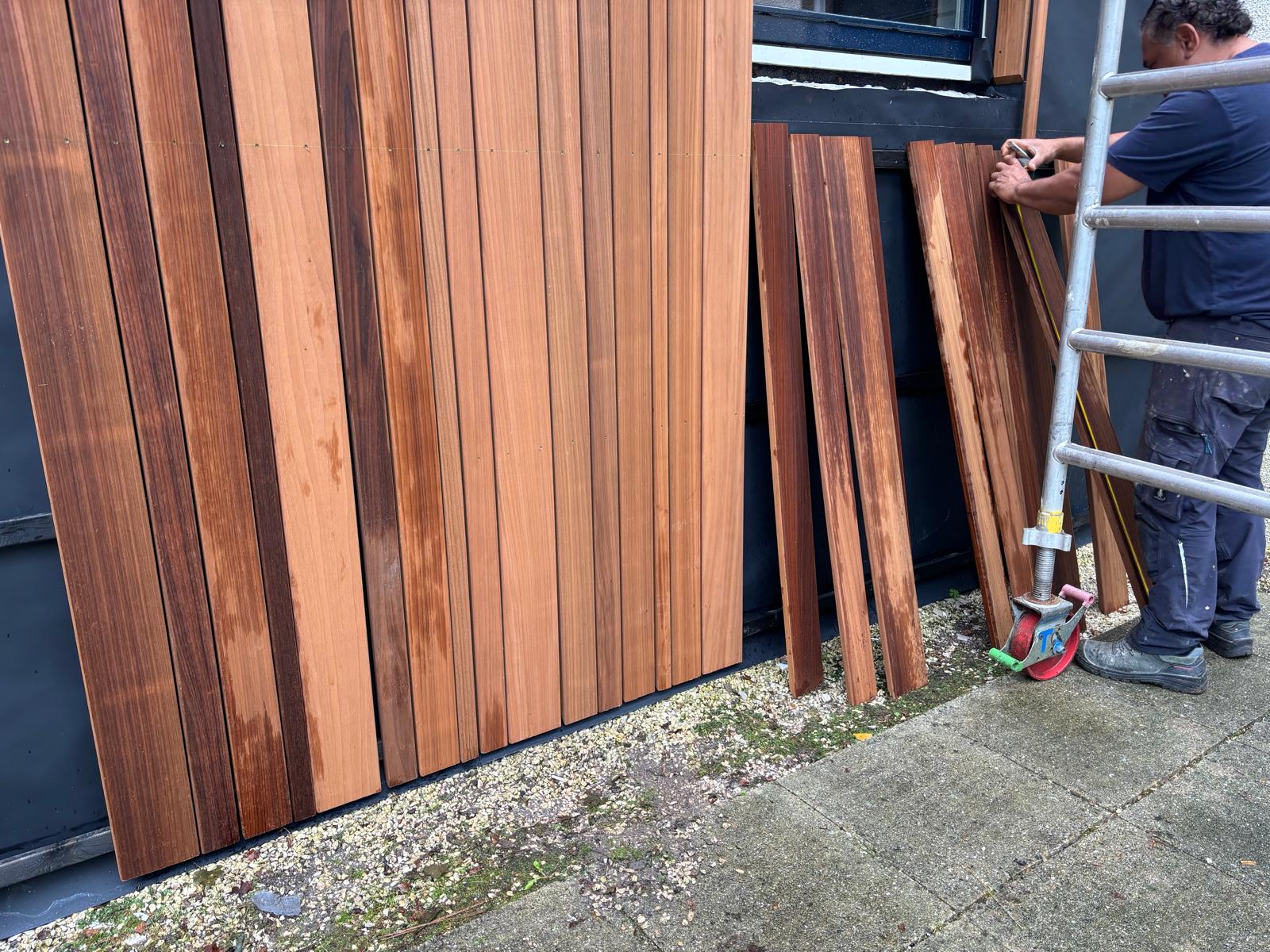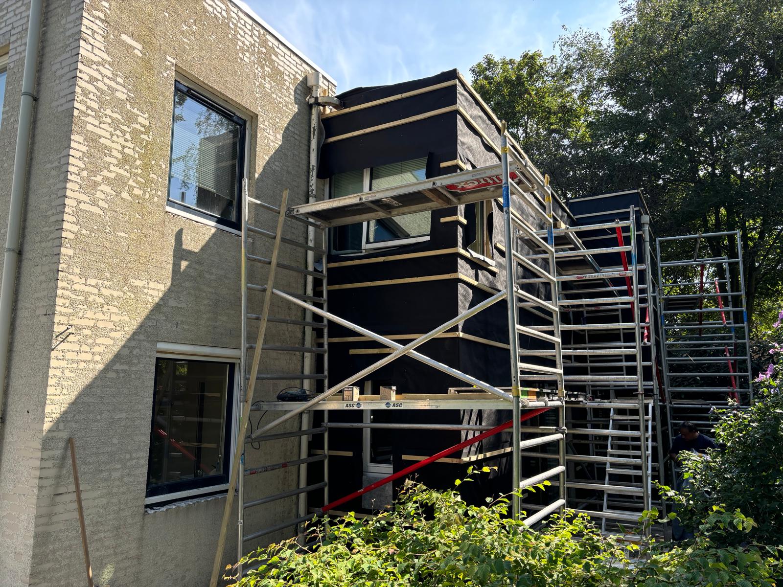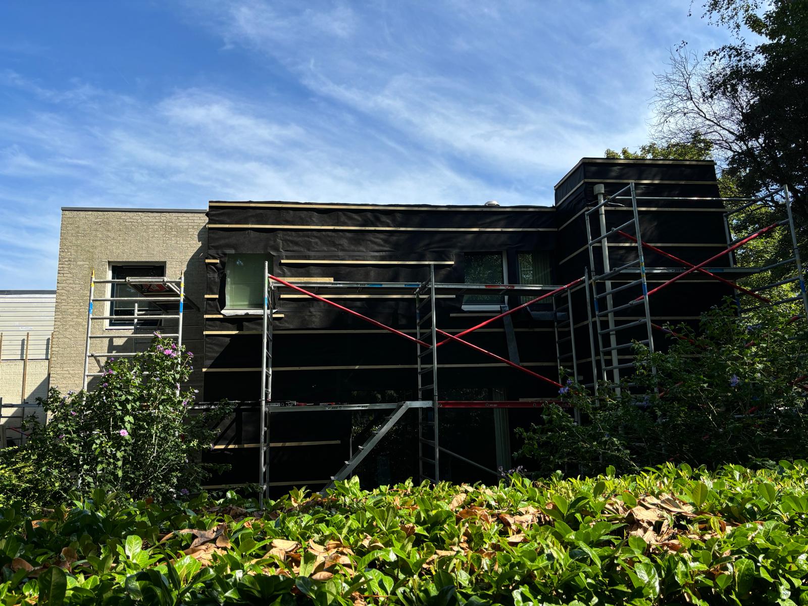 Realisatie van nieuwe Ayous gevelbekleding in combinatie met een Ispo-gevel, waarbij uitstraling, duurzaamheid en detaillering centraal stonden.